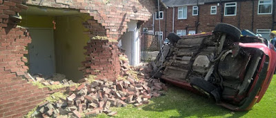 Um carro chocou com uma casa, em Newcastle, no Reino Unido, e destruiu uma parede quase por completo.