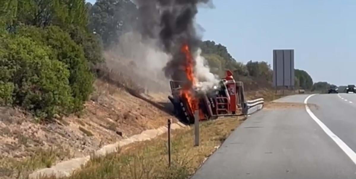 Um camião capotou e incendiou-se na berma da A2, esta sexta-feira. O acidente ocorreu perto da saída de Grândola-Ferreira, ao km 118, no sentido Algarve-Lisboa. Ao que o CM apurou o condutor ficou encarcerado e foi rapidamente retirado do camião em chamas por utilizadores da autoestrada que iam a passar no local.